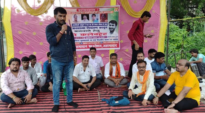 जनसंख्या समाधान फाउंडेशन जहानाबाद मे जनसंख्या नियंत्रण कानून लागु हो माँग को लेकर एक दिवसीय धरना |