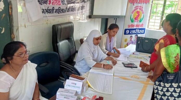 घोसी पीएचसी में प्रधानमंत्री मातृत्व सुरक्षा अभियान के तहत गर्भवती महिलाओं का स्वास्थ्य जांच
