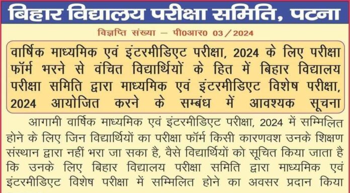 बिहार विद्यालय परीक्षा समिति द्वारा जारी महत्वपूर्ण सूचना|